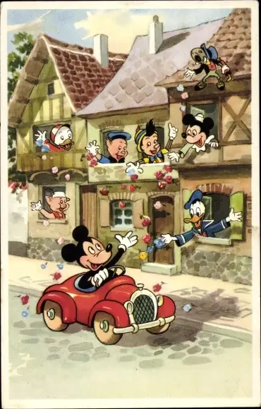 Künstler Ak Walt Disney, Mickey Mouse, Donald Duck, Pinocchio
