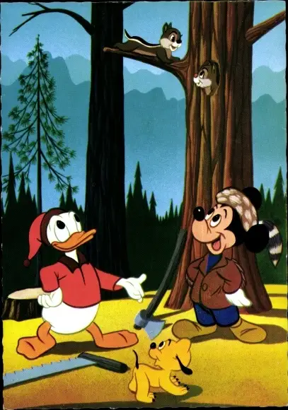 Künstler Ak Walt Disney, Mickey Mouse, Donald Duck, Pluto, Eichhörnchen