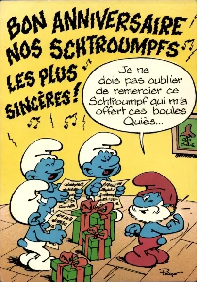 Künstler Ak Walt Disney, Singende Schlümpfe, Geschenke
