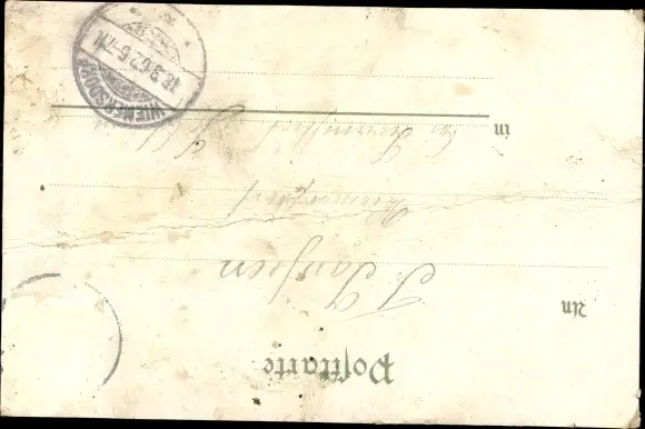 gelaufen 1902, Abriebspur rechts, Eckknicke, Ecken bestoßen, Knickspur mittig