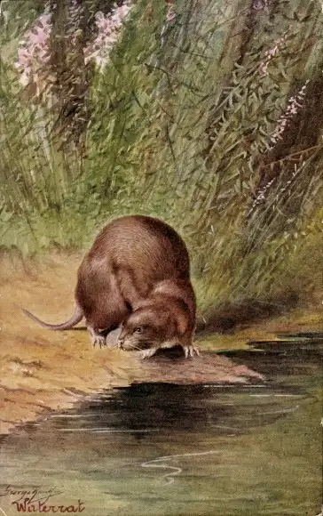 Künstler Ak Water Rat, Schwimmratte