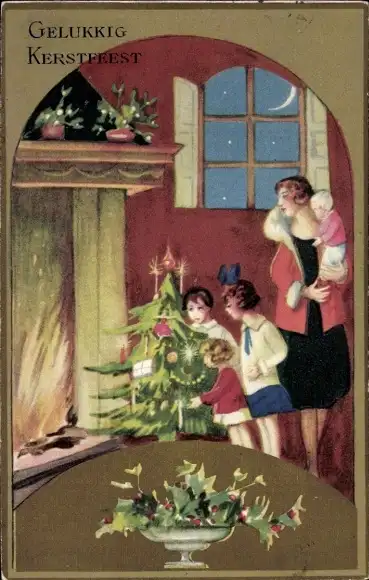 Künstler Ak Weihnachten, Tannenbaum, Mutter mit Kindern
