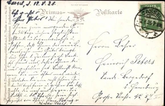 Zustand, siehe Scan, gelaufen, 1925- Primus 379 - ca 14 cm X 9 cm
