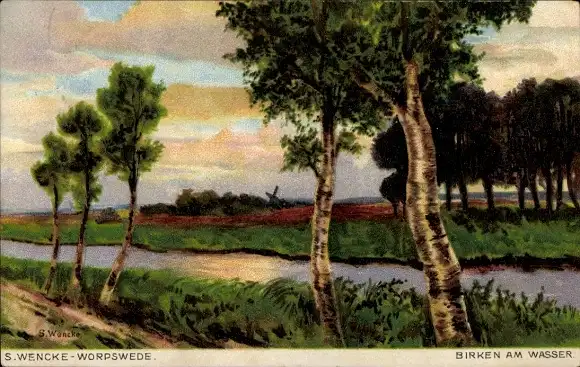 Künstler Ak Wencke, Sophie, Worpswede, Birken am Wasser