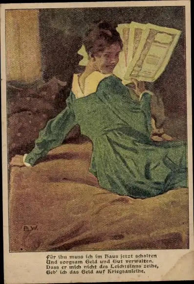 Künstler Ak Wennerberg, Bruno, Frau mit Kriegsanleihen