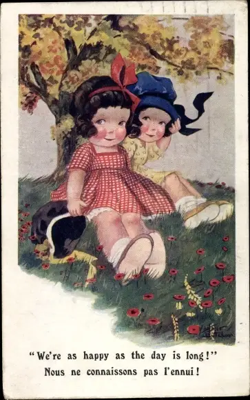 Künstler Ak We're as happy as the day is long, Mädchen auf einer Wiese