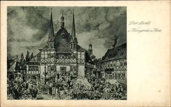 Künstler Ak Wernigerode im Harz, Markt, Rathaus