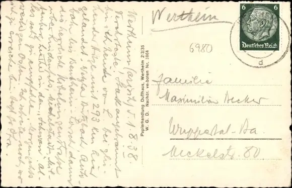 Zustand, siehe Scan, gelaufen, 1938 - ca 9 cm X 14 cm