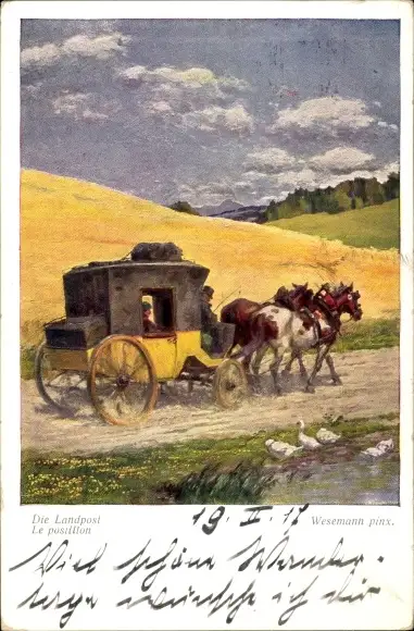 Künstler Ak Wesemann, Die Landpost, Postkutsche