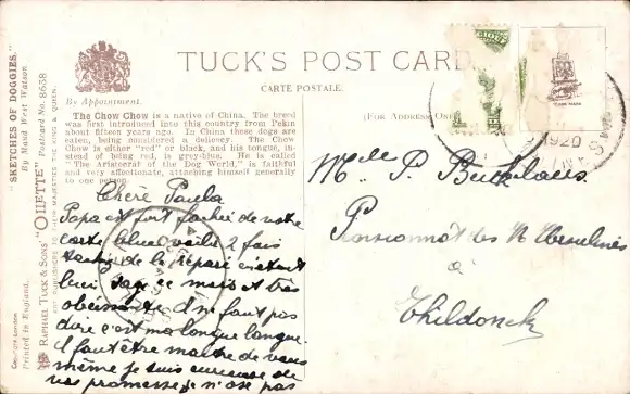 Zustand, siehe Scan, gelaufen, 1920- Verlag: Tuck 8638 - ca 9 cm X 14 cm