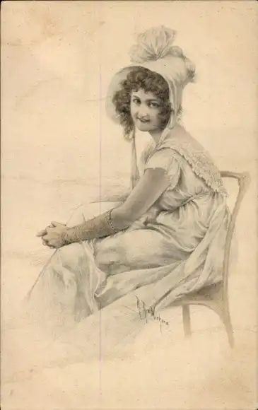 Künstler Ak Wichera, R.R., Lächelnde Frau, Porträt, Hut