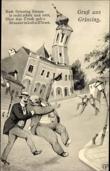 Künstler Ak Wien 19 Döbling Grinzing, Betrunkene auf der Straße