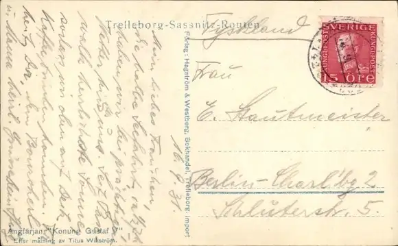Künstler Ak Wikström, Schwedisches Fährschiff Konung Gustaf V