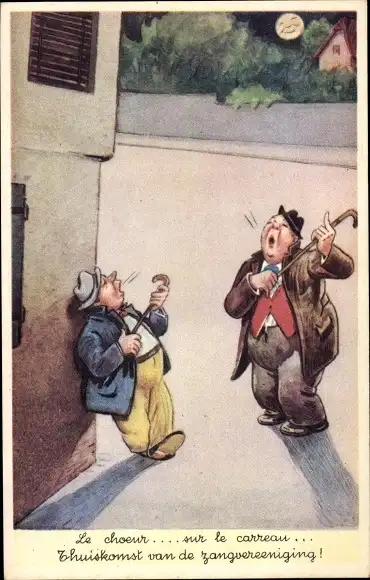 Künstler Ak Wills, John, Betrunkene Männer singen an einer Straßenecke