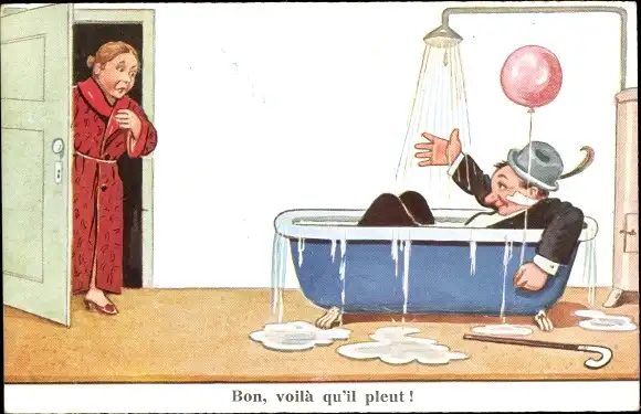 Künstler Ak Wills, John, Betrunkener Mann in einer Badewanne