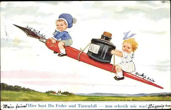 Künstler Ak Wills, John, Hier hast du Feder und Tintenfass, nun schreib mir was