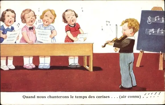 Künstler Ak Wills, John, Junge mit Geige, singende Mädchen