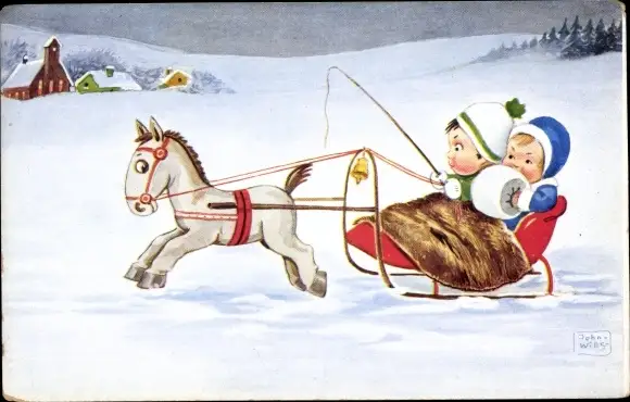Künstler Ak Wills, John, Kinder in einem Pferdeschlitten