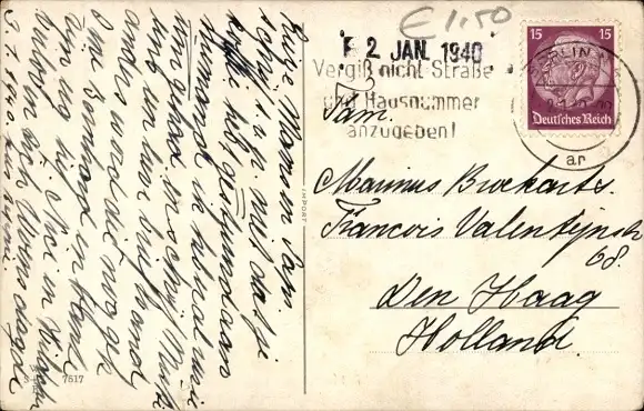 Zustand, siehe Scan, gelaufen, 1940 - ca 14 cm X 9 cm