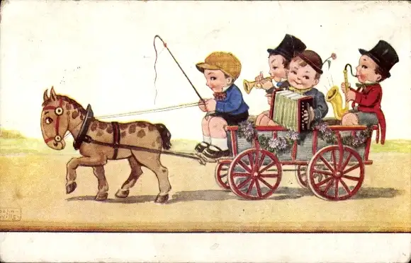 Künstler Ak Wills, John, Musikanten auf einer Kutsche