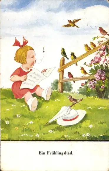 Künstler Ak Wills, John, singendes Mädchen, Vögel