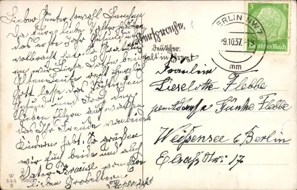 Zustand, siehe Scan, gelaufen, 1937 - ca 9 cm X 14 cm