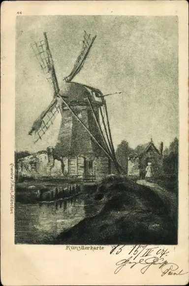 Künstler Ak Windmühle