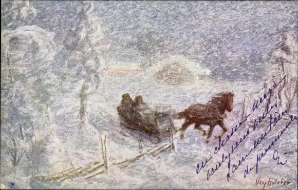 Künstler Ak Winterlandschaft mit Schlittengespann
