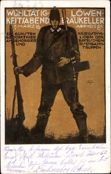 Künstler Ak Wohltätigkeitsabend Löwenbräukeller München 1916, Bayr. Eisenbahntruppen