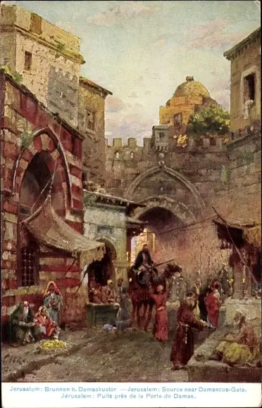 Künstler Ak Wuttke, C., Jerusalem, Brunnen, Damaskustor