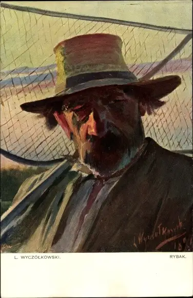 Künstler Ak Wyczolkowski, L., Rybak, Fischer, Fischernetz