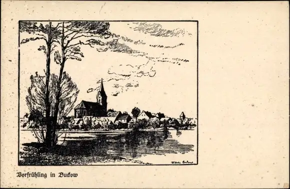 Künstler Ak Zadow, W., Buckow in der Märkischen Schweiz, Vorfrühling, Kirche