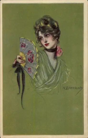 Künstler Ak Zandrino, A., Junge Frau mit Fächer