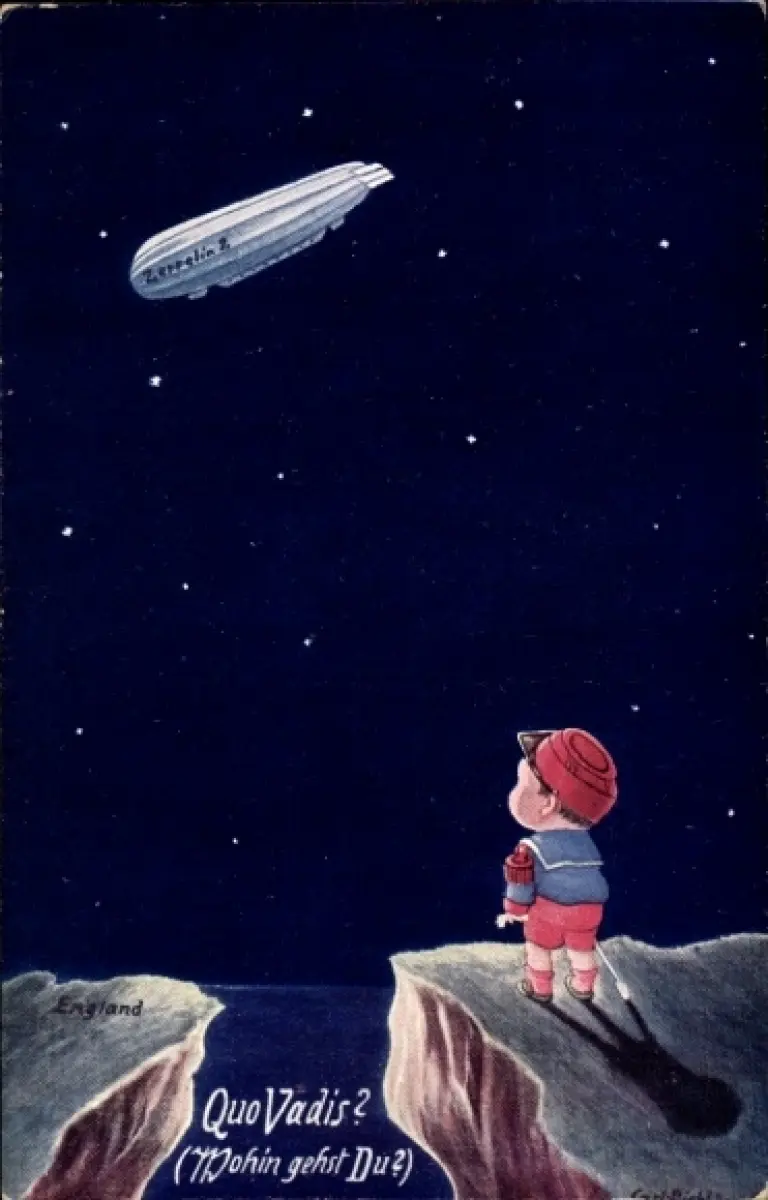 Künstler Ak Zeppelin, Quo Vadis, Deutscher Zeppelin, England, Frankreich, I. WK