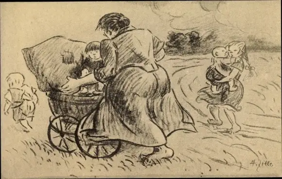 Künstler Ak Zille, Heinrich, ausfahrt, Mutter mit Kindern, Kinderwagen