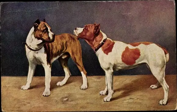Künstler Ak Zwei Hunde, Boxer, Bulldogge