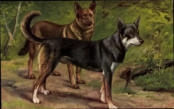 Künstler Ak Zwei Schäferhunde, Hundeportrait