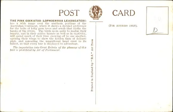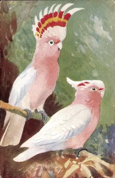 Künstler Ak the pink Cockatoo, Lophochroa Leadbeateri