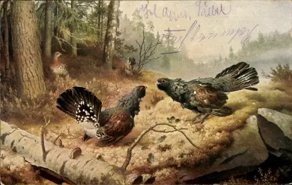 Künstler Ak v. Wright, W., Streitende Auerhähne
