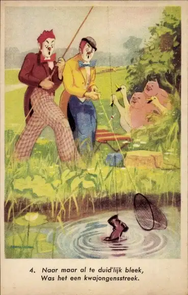 Künstler Ak zwei Clowns beim angeln