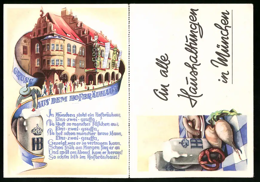 Künstler-Klapp-AK München, Münchner Hofbräuhaus mit Münchner Kindl