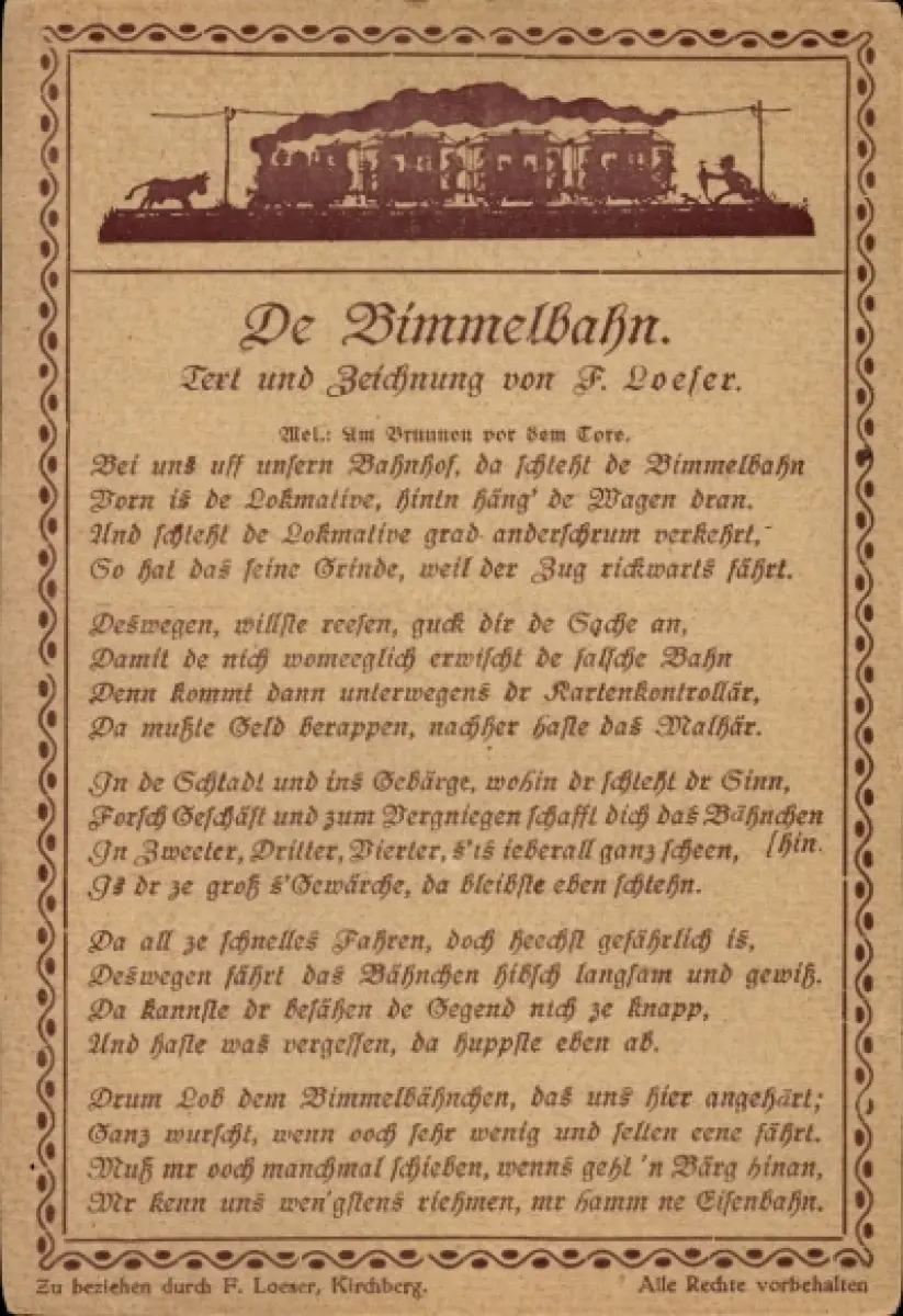 Künstler Lied Ak F. Loeser, De Bimmelbahn, Text