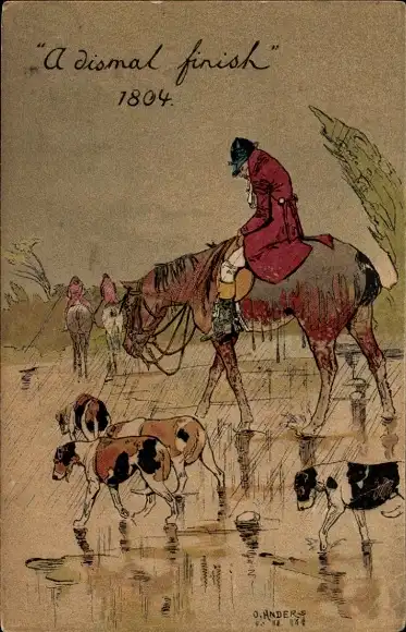 Künstler Litho Anders, O., Missglückte Jagd, Jäger, Jagdhunde, Pferd