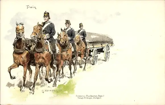 Künstler Litho Becker, C., Garde-Train, Soldaten in Uniformen