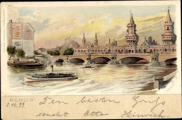 Künstler Litho Berlin Kreuzberg, Oberbaumbrücke, Dampfer