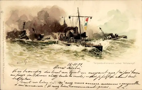 Künstler Litho Bohrdt, Hans, Deutsche Kriegsschiffe, Torpedodivision unter Volldampf