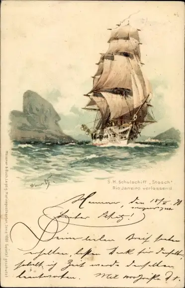 Künstler Litho Bohrdt, Hans, Segelschulschiff Stosch Rio de Janeiro verlassend