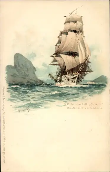 Künstler Litho Bohrdt, Hans, Segelschulschiff Stosch Rio de Janeiro verlassend