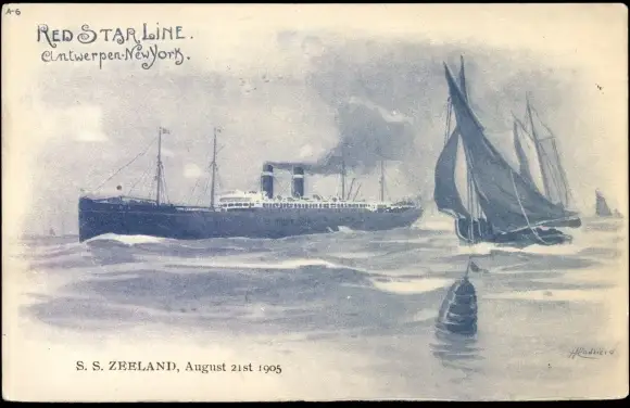 Künstler Litho Cassiens, H., Dampfer SS Zeeland, Dampfschiff, Red Star Line, Segelboot
