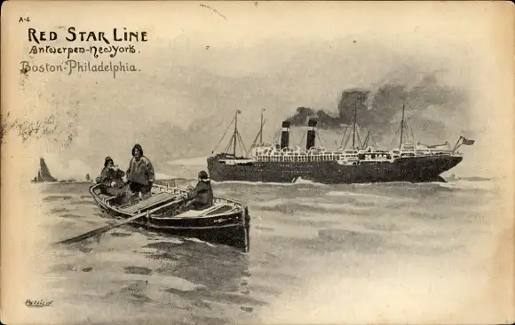 Künstler Litho Dampfer, Dampfschiff, Red Star Line, Ruderboot